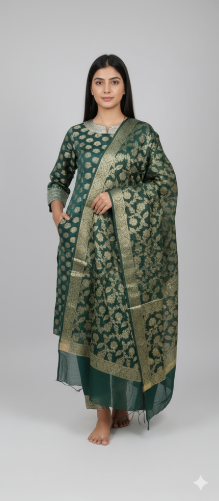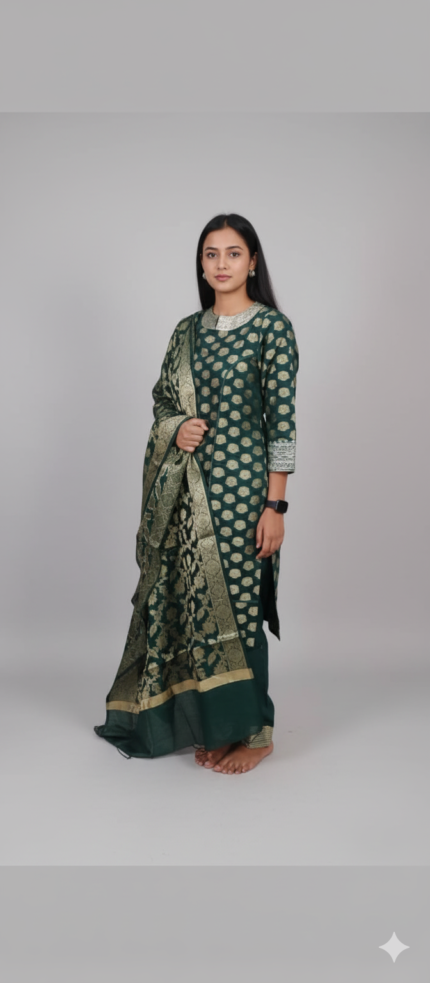 Women Green Chanderi 3 Piece Kurti Set – Zaram