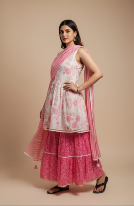 women Off-White & Pink Cotton Floral Print Kurti Sharara Set With Dupatta Biba Off-White & Pink Cotton Floral Print Kurti Sharara Set With Dupatta zaram ₹3,999.00 Original price was: ₹3,999.00.₹999.00Current price is: ₹999.00.