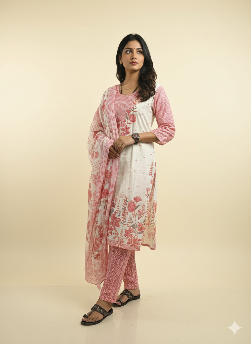 ZARAM REGULAR  PURE COTTON PRINTED SUITS (TOP ,PENT ,DUPTTA )