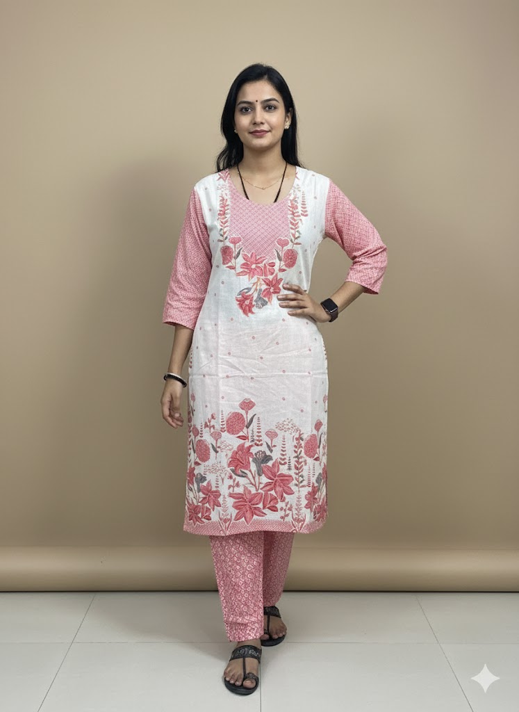 Step into timeless elegance with our 3 Pis Kurti in a soothing cream shade, designed to keep you stylish and comfortable all day long. Crafted from pure cotton, this piece is lightweight, breathable, and effortlessly chic—perfect for fashion lovers who value both comfort and grace.