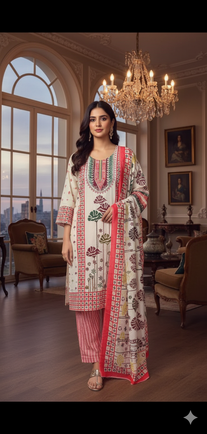 ZARAM REGULAR  PURE COTTON PRINTED SUITS (TOP ,PENT ,DUPTTA )