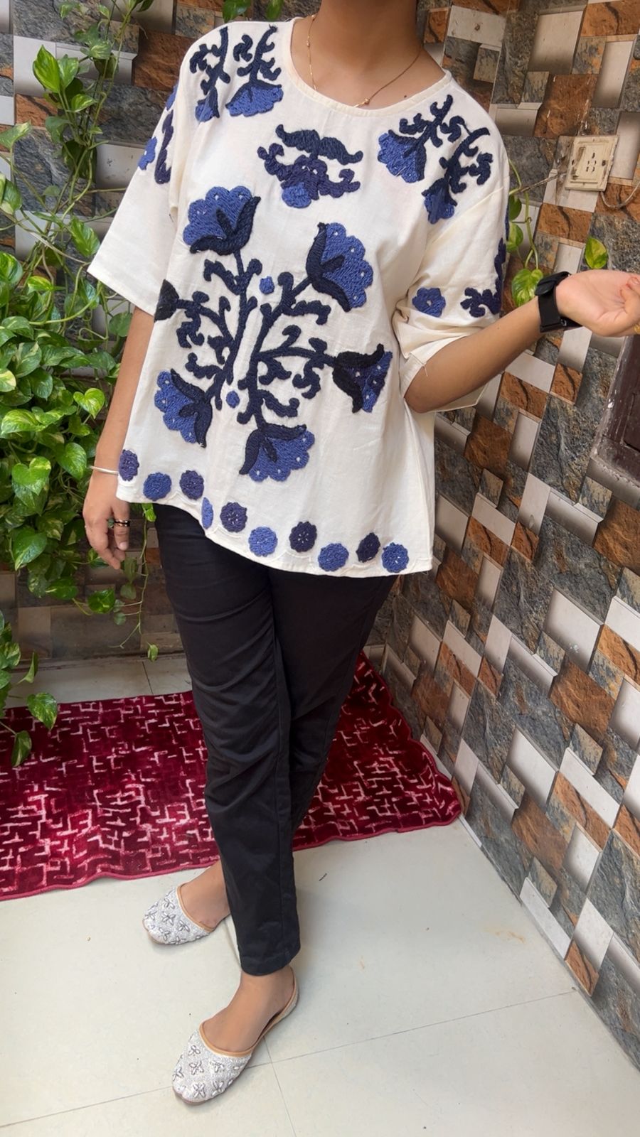 Home Top Zaram Pure Khadi Cotton Embroidery Top