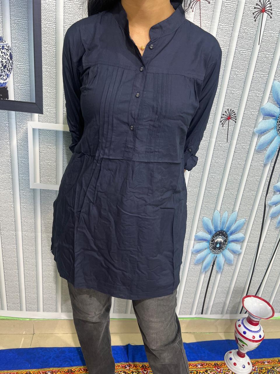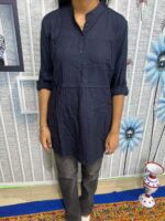Home Top Zaram Reyon Cotton Nevy  Blue Long Top