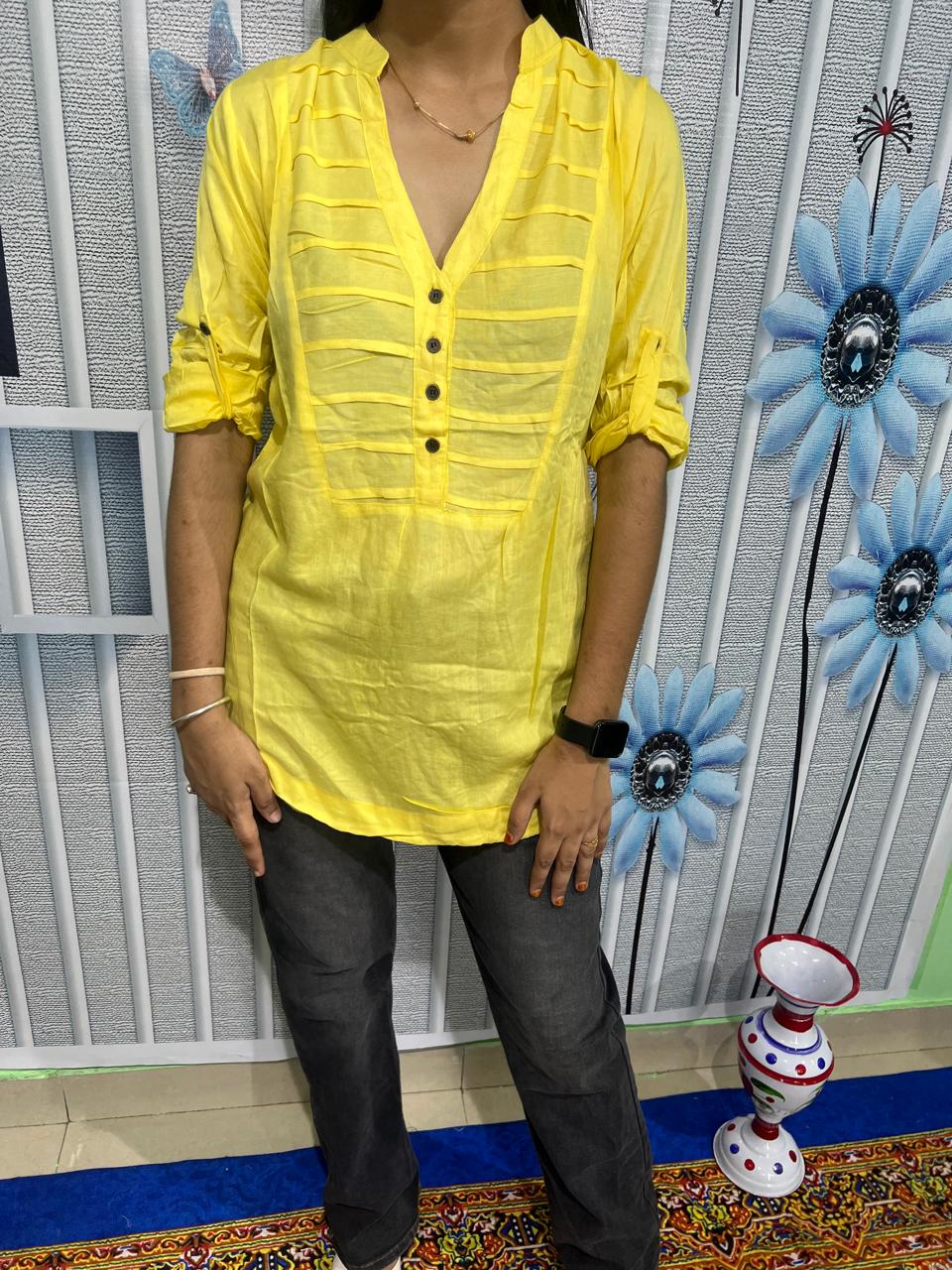 Home Top Zaram Reyon Cotton Yellow Top
