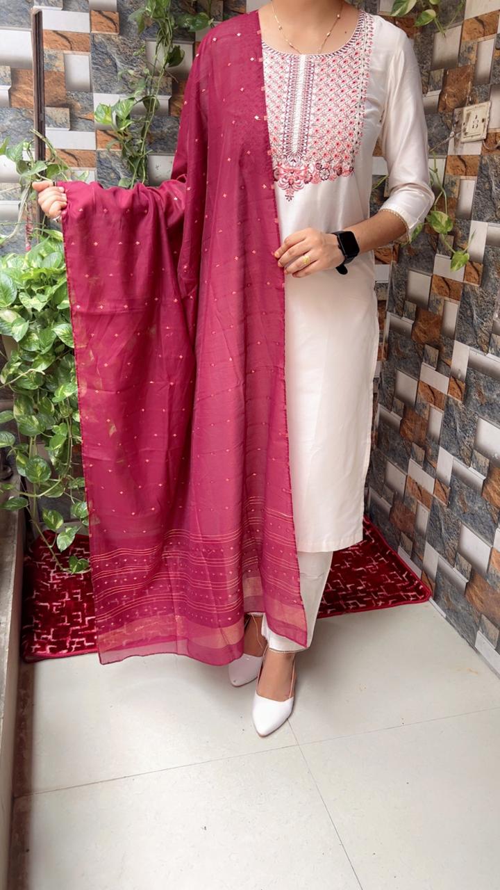 ZARAM Cotton Silk Off White Suits Pent Top Dupptta