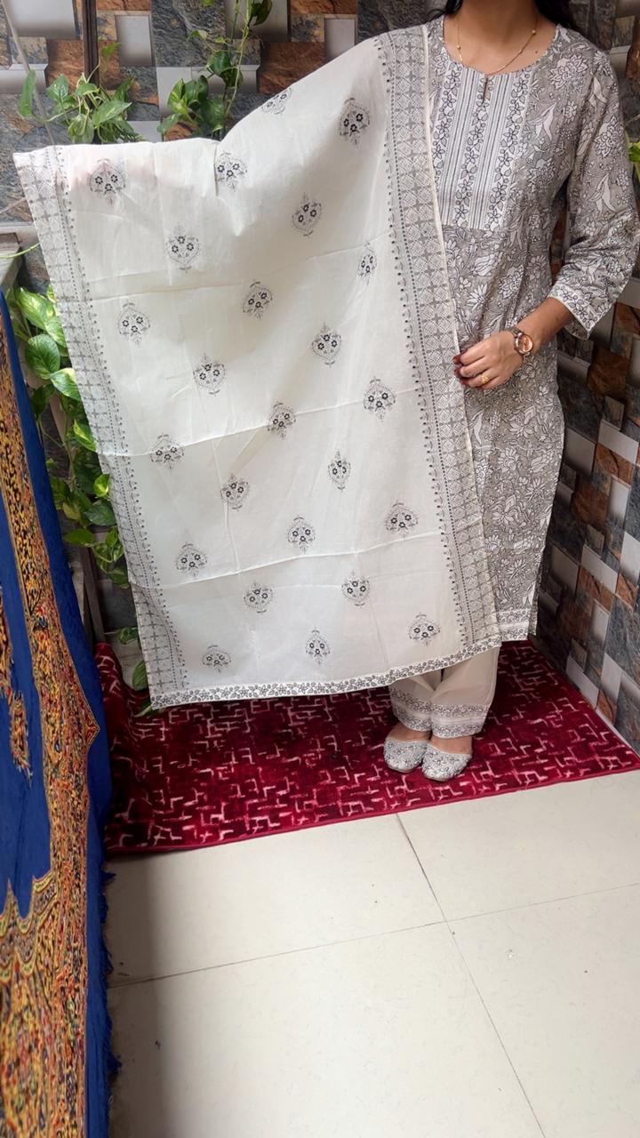 ZARAM Women’s Printed Straight Suit with Dupatta